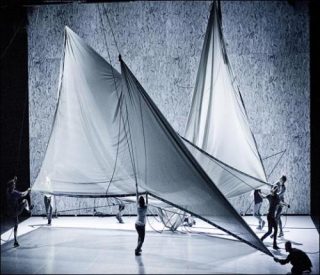 Jefta Van Dinther. Finalement, pour Plateau Effect, nous sommes en train de travailler avec un seul type de matériau –une immense pièce de tissu. Et effectivement, on peut dire qu’une sorte de «boucle», ou de circuit se crée entre les corps et le matériau. La chorégraphie est faite d’une stratification complexe, au sein de laquelle les mouvements intérieurs du corps, les interactions entre le corps et les matériaux, l’interaction sociale entre les corps et la part qui parle/chante/babille, donne lieu à quatre strates différentes qui se développent tout au long de la pièce. En général, il y a toujours plus d’une strate active. Cela aboutit à une sorte de «fusion» des composants, qui empêche de distinguer ce qui est quoi. Apparaît alors une sorte de «matérialité des activités», qui nous fait faire l’expérience de ce dont les choses sont faites. La matière que les danseurs manipulent devient une extension de leur propre corps. A certains moments, cette matière prend le contrôle de la relation, et c’est elle qui les manipule. Les mouvements de la bouche apparaissent en tant que matérialité, plutôt que simple communication. L’enjeu est d’amener l’attention vers les forces qui nous entourent, qui nous habitent et nous constituent. De ne pas les isoler en tant que principes définissables, aux contours précis, mais au contraire de les faire coexister, de leur donner de l’espace à expérimenter à l’intérieur de cette chose appelée corps. Et cela matériellement –quel que soit leur degré d’immatérialité.