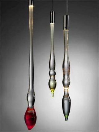 Une autre partie de l’exposition est consacrée à ses sculptures lumineuses. Avec Hude (« pinceau » en japonais), Mikko Paakkanen poursuit son exploration de la calligraphie et de l’idée poétique de peindre avec la lumière. Comme de grands pinceaux brillants trempés dans la couleur, ses œuvres en verre soufflé à la main se déploient dans l’espace comme d’amples gouttes d’eau illuminées tombant lentement. L’idée du jeu, cette fois-ci avec une connotation cinématographique, est également délicieusement présente dans la lampe Marilyn de 2008 dont le prototype se trouve dans les collections du Designmuseo à Helsinki. Comme un clin d’œil à Marilyn Monroe et à sa robe irrésistiblement soulevée par la grâce d’une bouche de métro dans le film Sept Ans de Réflexion, la suspension en tissu virevolte telle une jupe au-dessus de nos têtes grâce à un petit moteur. It’s showtime !