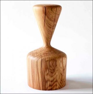 Le grand tabouret Big Stool de 2012 (lauréat du prix du PAD Paris du meilleur objet de design 2013) ouvre le bal en s’imposant dans l’espace comme une véritable sculpture monolithique avec son petit air de pion de jeu d’échec géant. Sa forme est inspirée par les ondes sonores et dévoile l’univers musical de l’artiste. Dans Big Stool, Mikko Paakkanen laisse le bois s’exprimer dans sa noblesse en le sculptant dans un seul bloc de chêne massif, qu’il a fait sécher pendant six mois afin d’y créer de profondes craquelures expressives. Big Stool est réalisé en deux versions, l’une en bois brûlé noir ainsi qu’une autre en bois naturel rappelant un jeu d’échec. Leur superbe facture témoigne de la double maîtrise de Mikko Paakkanen de designer de l’université d’art et de design de Helsinki et de maître ébéniste.