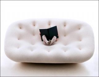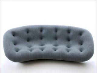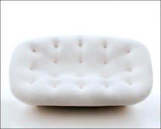 Pour parfaire le confort des canapés, Ronan et Erwan Bouroullec ont imaginé un pouf, ovale et lisse comme un galet de plage bretonne, qui permettra de reposer jambes et pieds et d’offrir à l’occasion un siège d’appoint.