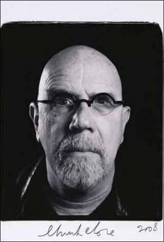 Célébré comme l’un des peintres figuratifs américains les plus influents de notre temps, Chuck Close a depuis les années 60, exclusivement concentré son œuvre sur l’art du portrait, employant toutes les techniques d’impression et de reproduction possibles: peinture, photographie, sérigraphie, lithographie, gravure, collage, etc. Ses modèles sont les membres de sa famille, ses amis et artistes, ou lui-même, qu’il représente en gros plan et de face sur de très grands formats verticaux.