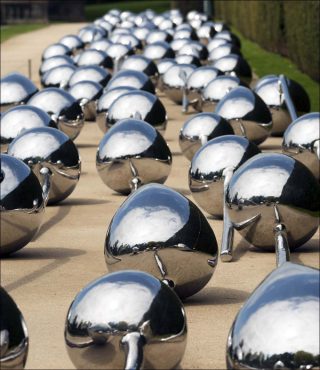 Les références à des ailleurs géographiques et culturels sont nombreuses dans l’œuvre de Not Vital comme en témoigne encore ses nouvelles créations. L’installation monumentale Let 100 Flowers Bloom a été réalisée à Pékin où l’artiste a installé son atelier principal en 2008. Cent sculptures en acier chromé représentant des lotus s’étalent à perte de vue. D’environ trois mètres de long, chaque fleur est unique, non pas moulée mais façonnée à la main. Les petites imperfections qui découlent de ce processus artisanal permettent à chaque pièce de réfléchir des effets de lumière qui les animent. Le titre de l’œuvre est une incitation à la méditation doublée d’une référence à un slogan de Mao Zedong.