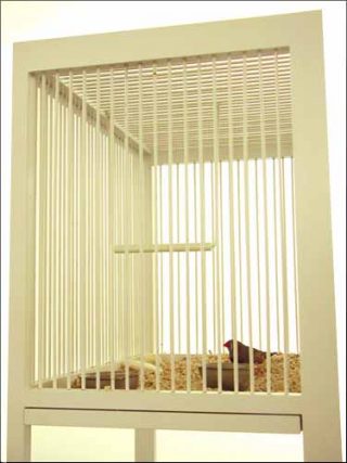 Sans l’oiseau, la cage fait figure de sculpture incomplète, n’enfermant que vide et silence. Seules à travers les barreaux apparaissaient et disparaissaient l’image fugace des photographies exposées. Comme dans une chambre photographique sans plan film, comme une véritable camera lucia.