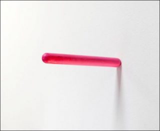 Ces objets, comme un ballon de plage qui se dégonfle ou un morceau de papier plié et porté dans la poche arrière, dépassent le cadre spatio-temporel de l’exposition. Certains s’érigent en monuments performatifs comme le fait d’avoir sucé un gobstopper (gros bonbon rond anglais à sucer, familièrement appelé «couille de mammouth») ou laissé tomber un bout de fil.