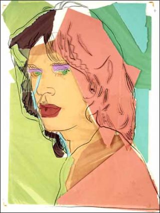— Mick Jagger, 1975. Screenprint on acetate and coloured graphic art paper collage on J. Green paper. 113 x 81,3 cm.