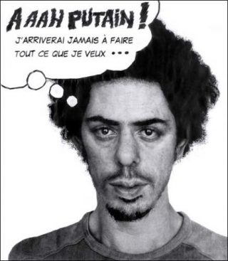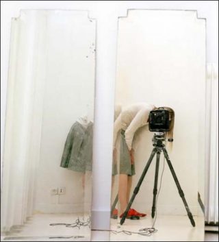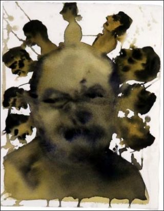 Celui créé par Gabriel Kuri fait acte de sobriété et, tout autant, d’expressivité forte. Dans Double self portrait in Tension, un rouleau isolant a été légèrement plié, et dans la courbure, deux ronds gris de plastique sont des yeux insistants. Ego, dessin de Jérôme Zonder réalisé à la mine de plomb fait fuser dans une bulle de pensée façon bande dessinée l’impatience d’une génération qui, en l’espèce d’un jeune homme aux yeux cernés, se tance de ne «pouvoir faire tout ce [qu’elle] voudrait». La photographie couleur sur papier Artist and her model reflecting in a mirror 1 commise par Elina Brotherus passe le portrait au crible de l’humour et montre une femme cachant sa tête derrière un appareil photo posé sur pied: peut-être pour prévenir le surgissement de son propre alter, la photographe se terre derrière son objectif et réduit son image à sa fonction. Rien de tel dans le portrait surmonté de plusieurs têtes qui marchent sur la sienne, que présente l’aquarelle sur papier PC 3 de Philippe Cognée. Les traits à l’aquarelle se diluent à outrance jusqu’à brouiller la singularité du visage assailli d’alters multiples qui, cette fois, pèsent d’une teinte sombre et entêtante sur l’individu.