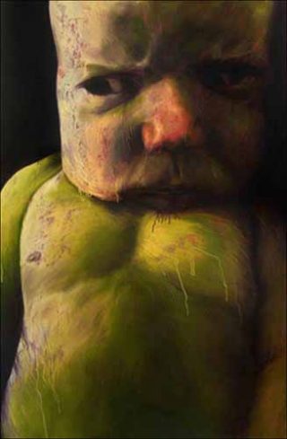 Figurés en gros plans, les Portraits d’enfants de Régis Gonzalez, peintre et graveur stéphanois, perturbent une iconographie jusqu’ici très réglementée, oscillant, dans l’art actuel, entre naïveté d’une génération d’adulescents peinant à sortir du premier âge, et provocation agressive, parfois gratuite, sur le thème du rapport de l’adulte à l’enfance.