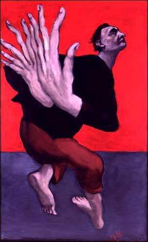 — Le Vol du fou, autoportrait, 2003. Huile sur toile. 130 x 81 cm.