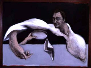 — Tour de passe-passe, autoportrait, 2002. Huile sur toile. 130 x 97 cm.