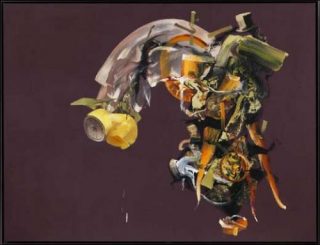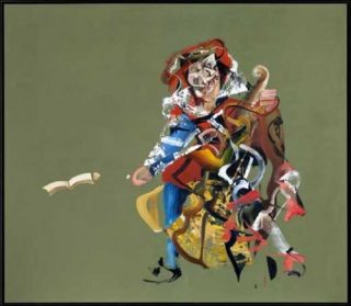 Au visage baconien, nœud d’articulation des différentes figures superposées, répond invariablement l’objet, qui a la netteté du surréel, comme éjecté du mouvement centripète de cette peinture: un filet de perles affublé d’une ombre étrange, contrepoint ironique ou menaçant à la figure monumentale et violacée qui occupe la majeure partie d’un tableau inspiré par Giovanni Bilivert.