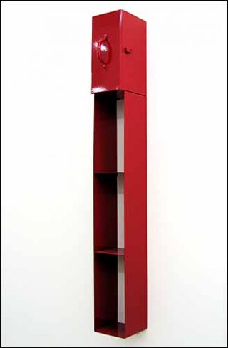 — Sans titre (Coffre rouge et étagère) , 2006. Acier thermolaqué. 144 x 17,3 x 25 cm.