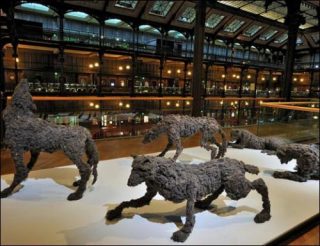 Lionel Sabatté. Dans la manière dont je l’envisage, c’est une figure de rassemblement à laquelle je donne une forme. Les premières pièces réalisées avec cette matière étaient éphémères. Puis, d’une pratique longue et fastidieuse de ce matériau est née l’envie de pérenniser ces objets. Les Loups portent ainsi le nom de leur mois de récolte, telle la mise en forme d’une trace d’humanité en perpétuel mouvement. Avril est inévitablement différents de Juin, car l’humanité a évolué entre temps, même de manière infime. Dans cette idée d’archéologie tournée vers le futur, je me dis que si l’on conserve encore ces loups dans 150 ans, peut être que quelqu’un s’étonnera de ces étranges témoins d’une civilisation qui les a précédés. Réfléchissant peu, aujourd’hui, à ces relations inter-temps, nous vivons dans un rapport trop souvent direct au présent alors que l’on détient tous les outils sophistiqués pour ausculter le passé ou envisager le futur.