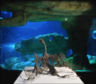 Lionel Sabatté. Cette notion me renvoie à la galerie de l’évolution du Museum d’Histoire Naturelle de Paris. Cet endroit, comme les cabinets de curiosités, demeure un carrefour situé entre une approche scientifique et poétique des spécimens. Il s’agit finalement d’un point de rencontre, d’un tremplin pour la connaissance et l’imaginaire, constitué d’éléments qui provoquent la curiosité du visiteur. Ce lieu d’échanges m’intéresse particulièrement. Je me réfère aussi à la figure ancestrale du sorcier qui amorce le savoir non dans son seul aspect pratique et rationnel, mais dans une forme de déviance poétique de la connaissance scientifique et du mysticisme convoquant d’autres réalités. «La Fabrique des profondeurs» propose également une rencontre avec l’art contemporain, autre forme de tremplin pour l’imaginaire, sans que celle-ci soit en concurrence avec l’aquarium. Au contraire elle s’appuie sur sa vie propre, et joue de ses atours.