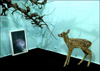 Avec sa scénographie dépouillée, Powered by Zero nous fait pénétrer dans un univers à l’épure parfaite. Une manière de clore l’espace et de faire entrer le visiteur dans un monde perturbant. Car si le plasticien nordique clame haut et fort son refus de scénarisation préméditée, il joue néanmoins avec la culture populaire et décape l’innocence Disney à la lumière du réel. L’animation charmante des années quarante fait place aux charognes empaillées de la taxidermie, la narration à des spectacles pétrifiés.