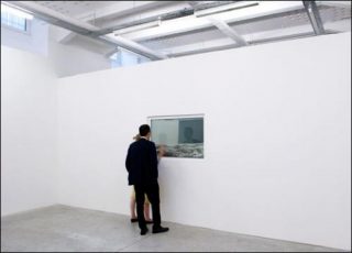 L’installation intitulée Algahest (2012) est la représentation de la planète Kepler 22B visible à travers une fenêtre amovible. Lorsque l’on retourne l’encadrement de la fenêtre, un paysage constitué de sable, d’air et d’eau (éléments nécessaires pour que toute forme de vie existe) se construit lentement. On sait peu de choses de K-22B, si ce n’est que la présence possible d’eau liquide sur sa surface pourrait signifier une forme de vie. La Nasa, en faisant récemment publier ce dessin d’artiste de la planète (finalement très proche de l’image de notre Terre), a choisi de communiquer ses progrès scientifiques à travers l’imaginaire subjectif d’un homme. Pour Pratchaya Phinthong, cette vision d’un monde futur renvoie à notre passé, avant toute civilisation. Algahest représente la manière dont la mémoire se construit à travers les différents filtres culturels, collectifs ou personnels. Le titre de l’installation fait allusion à un dissolvant universel capable de ramener tout corps à sa matière première. Ce processus consistant à passer d’une forme à l’autre est proche de la pensée de l’artiste. Chaque Å“uvre dans l’exposition étire le temps, passé ou futur, afin de pouvoir se positionner dans le présent.