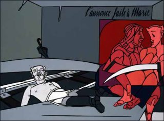 — La Jeune fille et la mort, 2003. Acrylique sur toile. 147 x 198 cm.