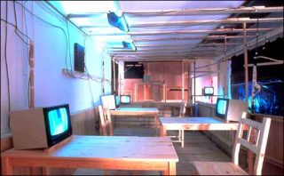C’est sur les frontières du lieu que se penche Francisco Ruiz de Infante lorsqu’il montre l’envers du décor. Il s’intéresse aux espaces interdits, à savoir les sous-sols du Plateau. Grâce à un savant bricolage, la construction (ou dé-construction?) d’un espace de bois et un système complexe de caméras vidéos, l’artiste nous entraîne dans un tour de l’inaccessible mis au jour.