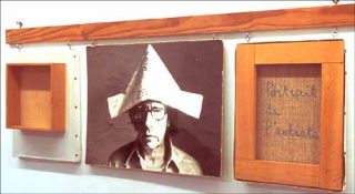— Portrait de l’artiste : bien fait, mal fait, pas fait, 1973. Photographie, crayon sur bois et châssis montés sur paneau. 33 x 96,5 cm