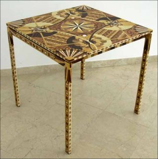 — Table Sculpture (Mella), 2006. Vinyles adhésifs découpés sur table d’appoint Ikea. 75 x 75 x 75 cm.