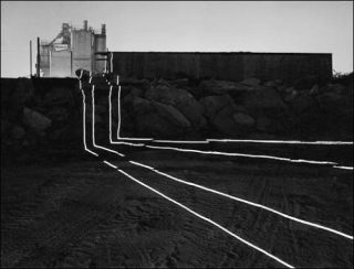 Magdalena Jetelova est née en 1946 à Semily en Tchécoslovaquie. Elle vit et travaille à Munich et Prague. Pour son projet Atlantic Wall, Magdalena Jetelova s’est rendue, en 1994-1995, sur un lieu d’intersection entre l’intervention humaine et la nature originelle, là où la longue côte Atlantique sauvage rencontre les bunkers érodés de la Deuxième Guerre mondiale — un univers de signes au sens où l’entendait Baudrillard. Ses projections de rayons laser signent ces monuments engloutis de la mégalomanie allemande sous forme de citations du livre de Paul Virilio, Bunker archéologie (1975). Elle fait ainsi apparaître dans le paysage deux sortes de lignes: d’une part le littoral, autrefois perçu comme position stratégique, d’autre part des lignes d’écriture projetées révélant un arrière-fond sublime, en un livre idéal.
