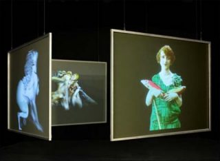— Jean-Jacques Lebel, Les Avatars de Vénus, 2007-2011. Vidéo installation composée de 4 écrans transparents disposés en cube ouvert sur lesquels sont projetés quatre séquences d’images en mouvement d’inégales longueurs.