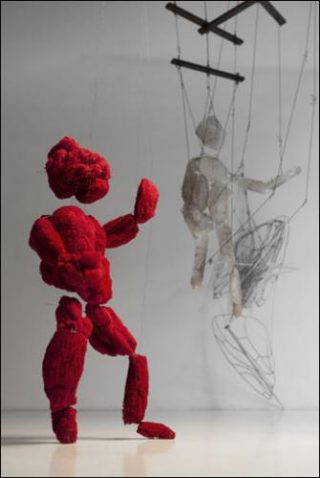 Tunga propose une série d’installations en « contagion mutuelle » selon ses propres mots. Un grand portail de fer, soutenant une potence monumentale, accueille le spectateur, comme à l’orée d’un rituel étrange. Un groupe de marionnettes, réalisées dans les matériaux emblématiques de l’artiste – fer, verre de bouteilles, cristaux – interroge à la fois les équilibres précaires de la sculpture et sa matérialité. L’utilisation de perles, de l’éponge ou même de l’ambre pure confère aux poupées une sensualité inouïe.