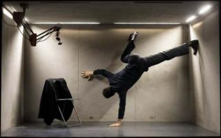 Pierre Rigal en complet-veston incarne dans Press l’homme urbain contemporain parfaitement banal. Cependant les signes d’une chorégraphie de l’absurde résident d’emblée dans son confinement: dans une pièce de taille réduite, le danseur possède une chaise pour seul accessoire. Les murs et le plafond de cette pièce recèlent le pouvoir redoutable de se rétracter encore jusqu’à réduire progressivement le volume vital à une compression extrême. Dans ce laboratoire entomologique de l’humain, le danseur déploie une gestuelle aussi riche que contrainte. On sera libre d’y lire une métaphore philosophique sur l’étroitesse oppressante des paramètres du quotidien. On pourra aussi y reconnaître une exploration chorégraphique fondamentale qui estompe la limite entre la notion d’espace et celle de la présence humaine qui s’y projette.