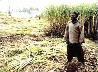 La seconde série consacrée aux coupeurs de cannes à sucre découle de la même logique. Zwelethu Mthethwa photographie des ouvriers agricoles sur leurs lieux de travail. Il s’agit de portraits en pied qui englobent largement l’environnement de travail des personnes photographiées. Les couleurs sont vives et contrastent avec la pénibilité de la tâche et le dépouillement de la géographie.