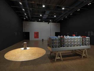 Exposer un cercueil aux formes du Centre Pompidou au sein même du Centre Pompidou: cette mise en bière de l’institution qui accueille l’artiste est complétée par une série de chants (funèbres) dont les paroles, inscrites aux cimaises de la galerie, ont été commanditées à des proches de l’artiste, dûment informés du projet. Parmi lesquels on notera Jean-Charles Masséra, André Magnin, Laetitia Paviani, Chloé Delaune, Claire Guezengar, etc.