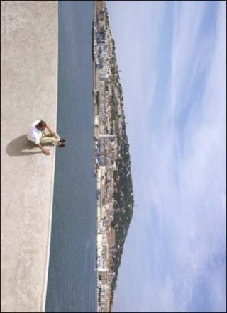 Reconnu à la fois pour son travail de sculpteur et pour sa pratique photographique, Philippe Ramette poursuit ses fameuses «promenades irrationnelles» entamées en 2003, lors desquelles l’artiste arpente désormais les abords du port de Sète dans des prises de vue toujours aussi déroutantes pour le spectateur. On retrouve ainsi dans l’accrochage de l’exposition des clichés ayant une dizaine d’années, et de nouvelles prises de vue réalisées spécialement pour l’occasion. Toutes les photos s’ancrent toutefois dans le même univers marin, et fonctionnent suivant le même principe, à savoir proposer des situations insolites.