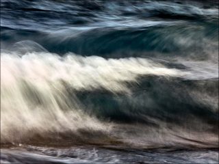 Les photographies de Jean-Martin Barbut jettent notre regard au cœur de l’élément marin, au plus près des rouleaux de vagues dont elle saisisse les mouvements et la violence. Chacun des clichés est marqué par un effet de flou qui reflète l’agitation aquatique, la vitesse et la force avec lesquelles l’eau déferle, s’élève et retombe sur elle même.