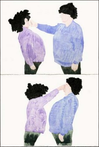 Au premier regard la peinture de James Rielly nous surprend avec ses sujets, souvent des enfants aux couleurs suaves, aquarellées, mais nous saisit aussi d’un sentiment d’inquiétante étrangeté ou au moins d’inquiétude. Douceur aux prises avec les peurs toujours insurmontées, peur de grandir, peur du noir, de l’absence, du monstrueux et de l’invisible. «Wenn jemand spricht, wird es heller» («Quand quelqu’un parle, il fait clair») dit l’enfant dans sa chambre obscure. C’est la voix de l’autre qui toujours éclaire la pénombre.
