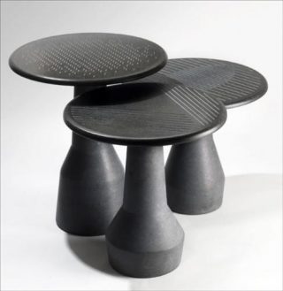 Thibaud Klepper présente Taille douce, une série de trois tables d’appoint, chacune taillée dans un bloc de granit noir, matériau peut utilisé dans le mobilier contemporain mais qui présente pourtant de riches possibilités de finitions, gravure et taille.