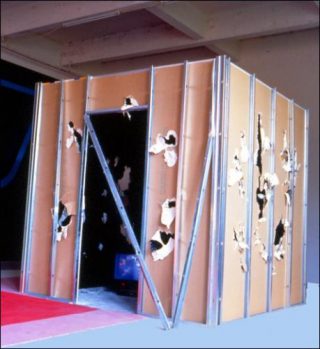 Trashed Black Box n°2 de Steven Parrino est un cube de placoplâtre de 2,5 m de côté, construit et détruit à l’aide d’une masse pour chaque exposition.