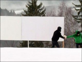 A titre d’exemple, dans Paint For Hochwechsel, le duo d’artistes We Are The Painters se filme dans la forêt, sous la neige, érigeant des panneaux sur lesquels ils réalisent une peinture grand format. La plupart des artistes font durer la temporalité de leur action en l’alliant à des médiums qui permettent son enregistrement — photographie, vidéo, mais aussi peinture et sculpture.