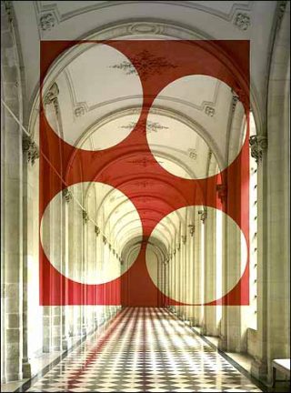 Felice Varini poursuit sa démarche d’exploration de l’architecture par une intervention de type picturale, démarche entreprise depuis son installation à Paris, en 1978. Le dispositif est simple et d’une très forte intensité : c’est à partir de l’analyse du lieu, de son architecture, de ses particularités (matériaux, histoire, fonction) que l’artiste élabore son projet d’intervention.