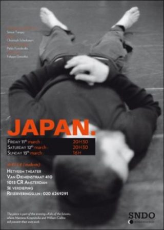 Dans Gerro, Minos and Him, deuxième prix du Concours Danse Elargie 2010, Simon Tanguy, danseur, clown et philosophe, se confrontait à la domination et à la manipulation d’un chorégraphe et d’un dramaturge. Avec Japan, c’est à un autre adversaire, invisible mais aux attaques incessantes, que se confronte Simon Tanguy dans une danse de l’agonie qui produit des mouvements non maîtrisés, entraîne la chute et les spasmes, se crie et se hurle, mais sait aussi swinguer ou bien claquer des doigts. Nietzsche est cité en exergue « Vivre c’est rejeter constamment ce qui tend à mourir ». En smoking blanc et pieds nus, le danseur se jette à corps perdu dans une lutte toujours gagnante du point de vue de la vie. Il l’affirme : « C’est un manifeste pour la joie de vivre, pour la mort. Retourner à la question de l’expressionisme, un retour au spectaculaire mais dans le mouvement ». Un mouvement propre à dessiner « un corps-insomniaque, un corps-rêveur, un corps-cadavre », qui parle et chante à l’occasion et se relève toujours.