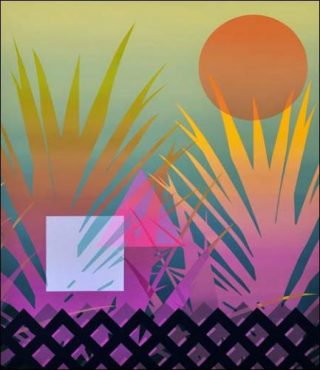 Ses derniers tableaux explorent cette fausseté dans toutes ses dimensions simultanément, avec un brio, une maestria même, que l’organisation de ses surfaces colorées à la manière d’un dashboard de Mac©® rend étourdissante: certains pans du tableau se floutent de voiles semi-opaques, ou glissent de droite à gauche, ou l’inverse, de mini-applications modifient les calques grâce à diverses fonctionnalités; d’un simple glissé-déposé elle invente des dégradés colorés inédits, des lumières qui viennent de derrière le tableau, plus proches de la blafardise sexy des LED que des couchers de soleil des chromos, des vaguelettes, des retournements 3D impossibles, un monde à la fois clos et sans limites, dense et désert, étouffant, oppressant et infiniment, éternellement reposant.