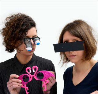 Le spectacle introduit avec ces montures un nouveau projet du duo qui s’appuie sur un ensemble d’« accessoires de la pensée » : des lunettes, stylos et gommes fantaisie qui sont autant d’outils pour remettre en question nos modes de pensée et de perception.