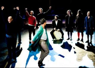 Dans la pièce se mélangent plusieurs types de langages: des langues existantes, réinventées et turbulentes, des chansons écrites par Lazare et inspirées de répertoires aussi divers que le blues, l’opéra, la chanson française ou les chants révolutionnaires, et aussi des tableaux peints à la van Gogh par la mère, qui se lève au milieu de la nuit.