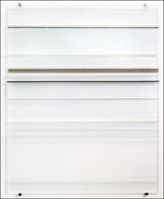 Dès 1967, Gerhard Richter introduit le verre dans sa pratique: la pièce 4 panneaux de verre vient compléter sa verve abstraite et poétique. Plus tard, il écrira dans ses Notes: «Mes tableaux sont sans objet; mais comme tout objet, ils sont l’objet d’eux-mêmes. Ils n’ont par conséquent ni contenu, ni signification, ni sens; ils sont comme les choses, les arbres, les animaux, les hommes ou les jours qui, eux aussi n’ont ni raison d’être, ni fin, ni but. Voilà quel est l’enjeu. (…) Les toiles abstraites mettent en évidence une méthode: ne pas avoir de sujet, ne pas calculer, mais développer, faire naître.»