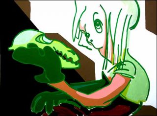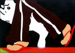 Chez Kolle, la référence est autant celle du peintre anglais que celle du cartooniste Tex Avery. En effet, dans les dessins animés de ce dernier les humains ne sont que des jambes où passent en dessous chats et souris, comme Tom & Jerry.