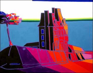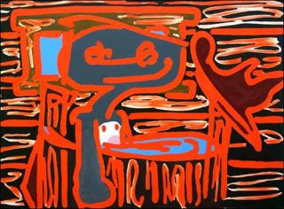L’exposition de peinture «Rainbow Inn Motel Complex» est pleine de fraîcheur. Regine Kolle parvient à peindre en dessinant. A l’aide de traits colorés elle dose ses effets en clairsement la toile ou en la saturant. Les figures sont linéaires et se donnent à voir immédiatement. Elles ne tiennent pas à un fil mais sont dominées par des couleurs vives qui frappent immédiatement le regard. Les toiles se succèdent et tout est à prendre dans le vif, dans le moment. Le résultat est pictural bien que les moyens soient graphiques. L’utilisation du contour est presque une science, elle parvient à étouffer ou à aérer la surface du tableau, c’est au choix, mais elle privilégie toujours l’échange et le passage.