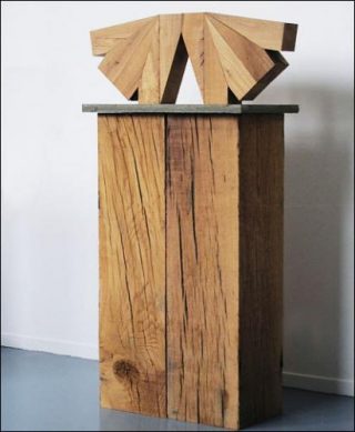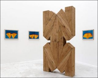 La préparation de cette exposition a d’ailleurs permis d’identifier l’usage premier de ces formes abandonnées: des structures artificielles destinées à être immergées afin de reconstituer des récifs sous-marins. En parallèle, Raphaël Zarka installe, telle une collection de grands formats, l’ensemble des sculptures Les Prismatiques. Il reprend la forme de la clef de châssis, utilisée par les peintres au dos de leurs toiles pour ajuster la tension et l’utilise comme un module à répéter pour assembler des variations inattendues. Les modules sont taillés dans des billes de chêne de taille identique en opérant toujours selon un unique trait de coupe. Les éléments agencés de manières différentes se combinent pour former à chaque fois une nouvelle configuration, comme les pièces d’un jeu de Tangram.