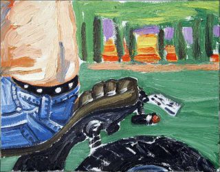 Moto rouge, Moïse, 0+0=0, L’Évasion, Le Parisien, Hannibal… Les œuvres choisies par Raphaëlle Ricol pour INDEX2K21.22, ce group show surprennent par la poésie urbaine qui se dégage de violents coups de brosse aux vifs contrastes, de cadrages gros plan sur des motos, de machines arrêtées en pleine course.