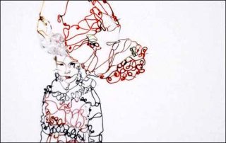 Exposer du dessin ne revient pas à en montrer des pratiques usuelles. Dans le travail de Rainer Lericolais, le motif figuratif est accroché au mur sous forme d’entrelacements délicats d’encre et de colle, pour souligner la fragilité du médium, son concours à l’imperceptible fascinant. De même, la figure historique de Jonathan Borofsky et ses Phone Drawings lie le dessin à l’écriture automatique gribouillée au stylobille.