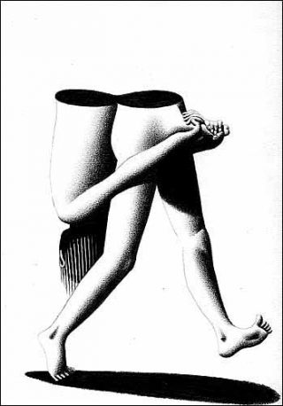 Dans un autre registre plus formel des objets anthropomorphiques font penser à Jean Arp et aux formes «dodues» de la période dite classique de Picasso, alors que certains dessins comme celui de cet homme dont la tête est engloutie par un livre relèvent d’un humour subtil qui appelle une parenté avec les rébus de René Magritte.