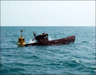 Œuvre centrale de l’exposition coproduite par Fabrica à Brighton (Angleterre), le Frac Basse-Normandie de Caen et le Musée des Beaux-Arts de Calais, REEF est le dernier projet de Simon Faithfull. Depuis le mois d’août 2014 et jusqu’en juin 2015, des caméras sous-marines filment en continu un bateau que l’artiste a fait couler au large de Weymouth en Angleterre. Avec cette installation monumentale en pleine mer, Simon Faithfull souhaite observer la création et l’évolution de ce récif artificiel.