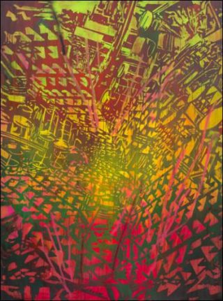 Dans une toute autre mesure qu’elle porte ici à son paroxysme, Rosson Crow propose des lieux désertés dont la spatialité tend vers une abstraction psychédélique et hallucinatoire: avec la maîtrise d’un nuancier corrosif et l’adresse de ses cadrages (frontal, panoramique, abyssal) qui témoignent de son savoir-faire