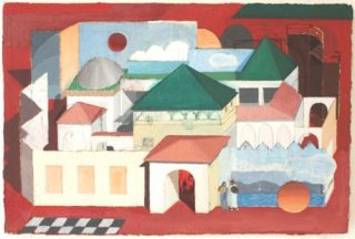 Ces peintures ont été réalisées après un voyage à Volubilis, un ancien comptoir romain au Maroc. Plus tard à Fès, j’ai fait des peintures à la tempera en gardant cette escapade à l’esprit. Dans une sorte de délire, j’ai repensé à cette visite – le soleil couchant du désert de l’Utah qui colore les roches d’un rouge sang, la bouleversante absence des habitants de Volubilis, les gravures de William Stukeley, l’art aborigène et notre manque de compréhension des dessins du désert de Nasca, qui se comprennent uniquement vu d’en haut.